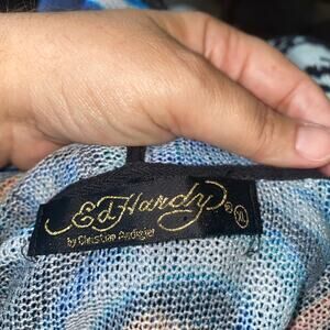 VTG 90's Y2K Ed Hardy Koi Fish Hoodie VNeck Tunic Sweater XL