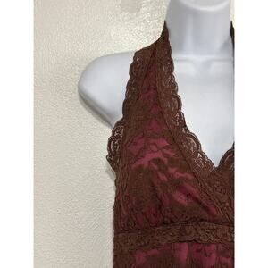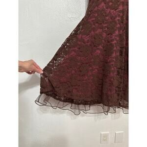 VTG 90s Y2K Halter Babydoll Lace Dress L Brown Pink Whimsigoth Forest Fairy