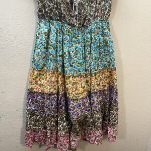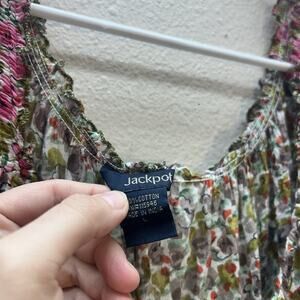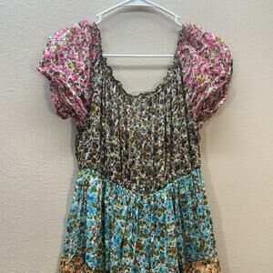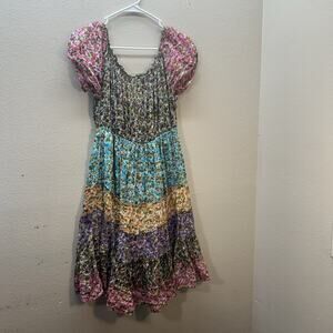 VTG 90s Y2K Jackpot Cottagecore Dress Tiered Midi Boho Puffed Sleeves Womens Large 100% cotton lightweight bohemian festival indie patchwork
