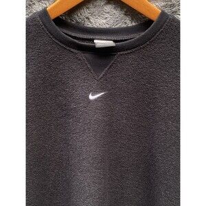 VTG 90s Y2K Nike Sweatshirt M Black Gray Terry Crewneck Center Swoosh Silver Tag