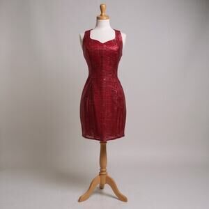 VTG 90s Y2K Roberta Red Sequins Mini Dress Sz 3/4 Sweetheart Neck Bodycon Glam