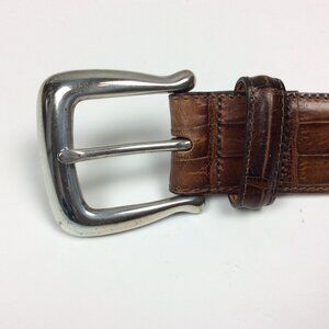 Vintage 90s Y2K Talbots Crocodile Embossed Leather Belt with Teapots