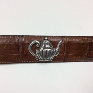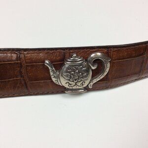 VTG 90s Y2K Talbots Teapots Croc Embossed Leather Belt Made in USA Novelty M