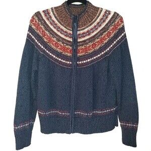VTG 90's Y2K Tiara International Fair Isle Front Zip Cardigan Sweater Size Large