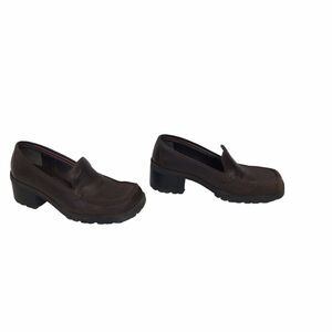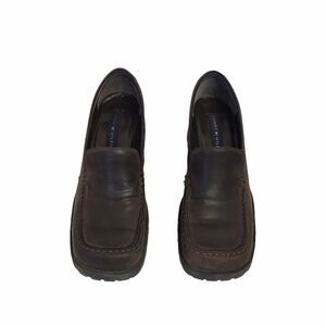 VTG 90s Y2K Tommy Hilfiger Brown Leather Chunky Heel Womens Platform Shoe 8