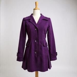 VTG 90s Y2K Wet Seal Peacoat Jacket Med Purple Knee Length Single Breasted Wool