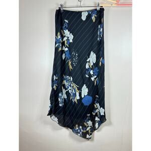 VTG 90s Y2K Women’s Midi Skirt Dark Floral Asymmetrical Hem Made in USA Medium