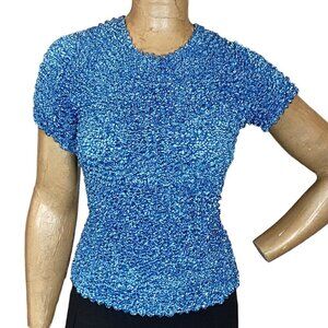 VTG 90s Y2K Xhilaration Popcorn Crinkle Stretch Top One Size Blue 285A