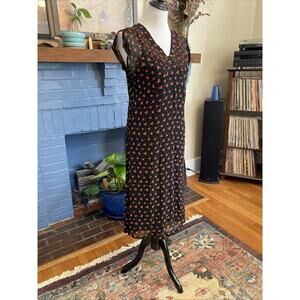 VTG 90s Y2k April Cornell S Rayon Floral Prairie Babydoll Slip Dress Sheer Beads