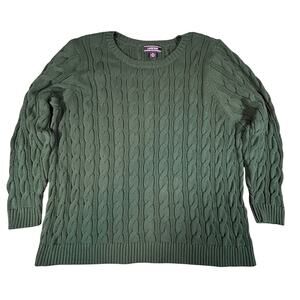 VTG 90s Y2k Lands' End Cable Knit Sweater Green Womens 3XL