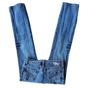 VTG 90's Yes Brand Jeans Girls 10 Blue 25 inches x 26" Studded Embroider…