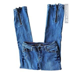 VTG 90's Yes Brand Jeans Girls Sz 10 Blue 25 inches x 26" Studded Embroidered Back Leg Zips