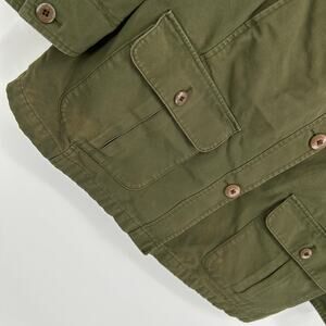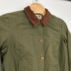 VTG 90s y2k Women's Green Brown L.L. Bean Corduroy Collar Canvas Chore Coat XL