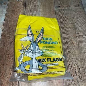 VTG 90’s 1993 Six Flags Bugs Bunny Rain Poncho Yellow Vinyl Adult Size.
