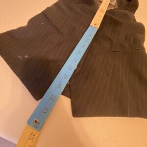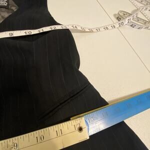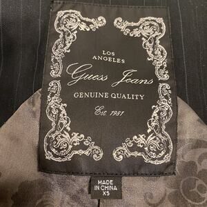 The VTG 90s-Y2K Guess Women XS Suit Vest in black with pin stripes is a vintage piece perfect for formal occasions. Made of polyester with a rayon fabric type, this mid-length suit vest features a button closure, slim fit, and sleeveless design. The lightweight and lined vest is ideal for the seasons of summer, fall, and spring. With a retro theme and classic style, this Guess branded suit vest is a unique addition to any wardrobe for those who appreciate goth and grunge fashion.