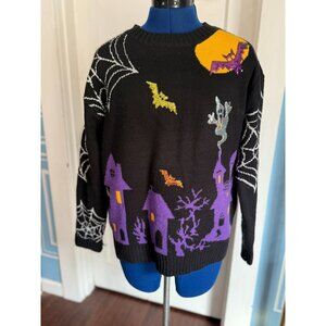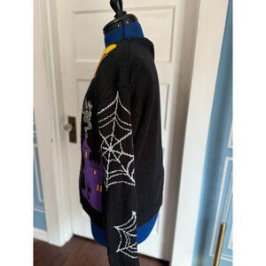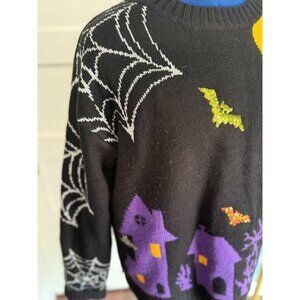 VTG 90s-Y2K Sequins + Sparkly Glitter Haunted House Ghosts Bats Spider Web Cozy Sweater