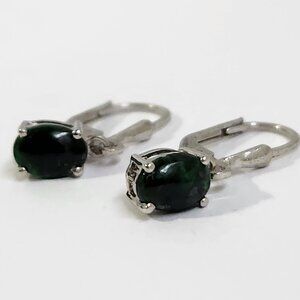 VTG 925 Green Opal Leverback Earrings - Beautiful marble coloring.