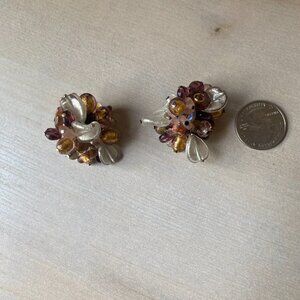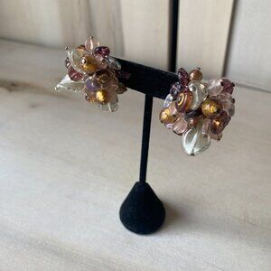 VTG 925 Italy Pierced Glass Chunky Cluster Earrings Brown Purple Rossana fairy