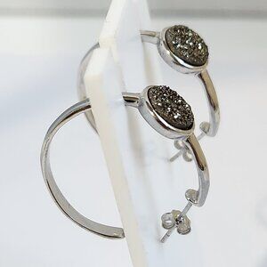 VTG 925 Silver Druzy Hoope Stud Earrings