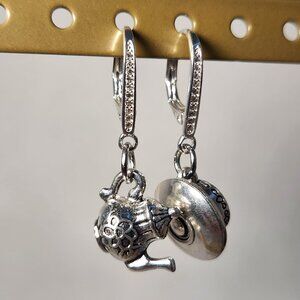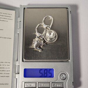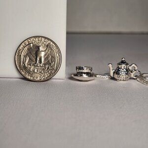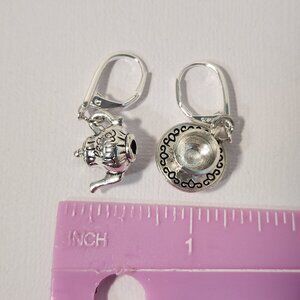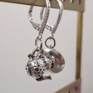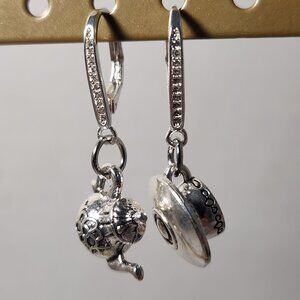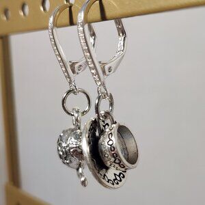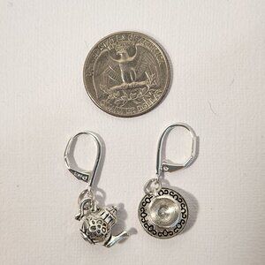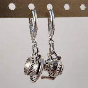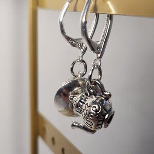 VTG 925 Teapot and Cup & Saucer Dangle Zircon Leverback Earrings