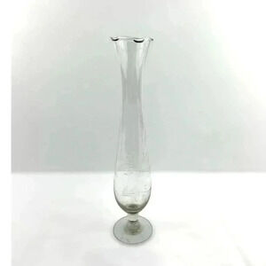 VTG 9.5" Tall Clear Glass Vase Floral Pattern Design Made in Mexico