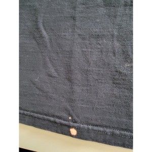 Has bleach spots on front bottom hem. Fading and graphic is peeling and cracked.