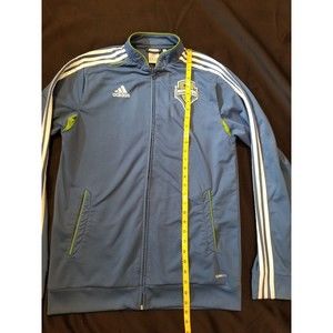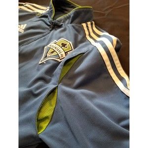 Very rare Sounders jacket. Climalite technology. Has vented areas around the pits. Dimensions are in photos. There is some paint fade on main zipper and some minor dirt inside of sleeves on the white trim. Feel free to message with any questions.