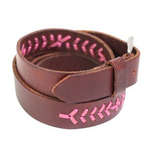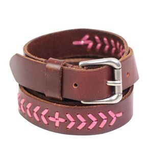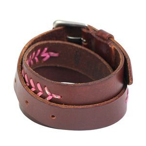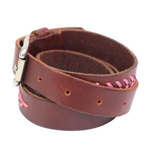 VTG AEO BROWN PINK GENUINE LEATHER 1"Wd CASUAL DRESS WOMEN'S BELT Sz L (F41