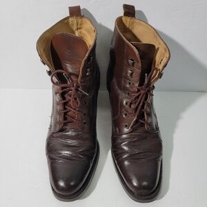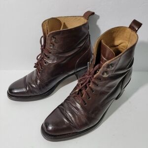 VTG ALDO Y2K Women Brown Leather Lace-Up Booties Sz 37 Made In Italy Block Heel