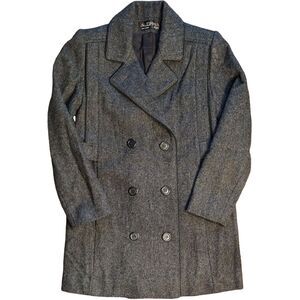 VTG ALORNA PETITE Double Breasted Wool Blend Gray Herringbone Coat, Size S/M