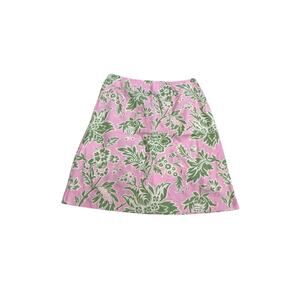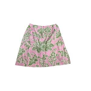 Vintage Handmade Preppy Pink Green Floral Cotton A-Line Knee Length Skirt - This item is handmade and there are no size or material tags.