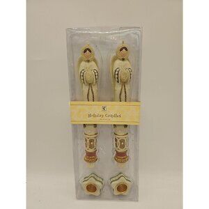 VTG AMSCAN HOLIDAY ANGEL CANDLE SET OF 2 10" CHRISTMAS #449407 HAND PAINTED