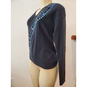 VTG ANNE KLEIN KNITWEAR ANGORA /WOOL MIX embroidery Sweater V Neck SIZE S #462