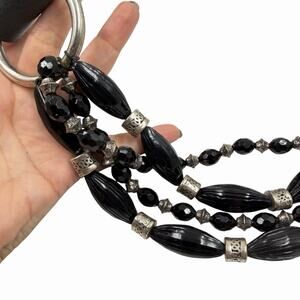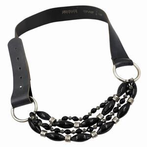 VTG ANTONIAZZI FIRENZE BELT 80s 90s TIERED BLACK SILVER BEADED LEATHER SIZE XL