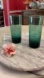 VTG AQUA MARINE SET/2 HANDBLOWN TALL GLASSES, POLISHED RIM MCM
