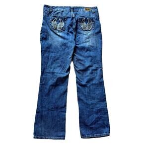 - Embellished Back Pockets: Rhinestones, Wings Applique, Raw Hem Detail