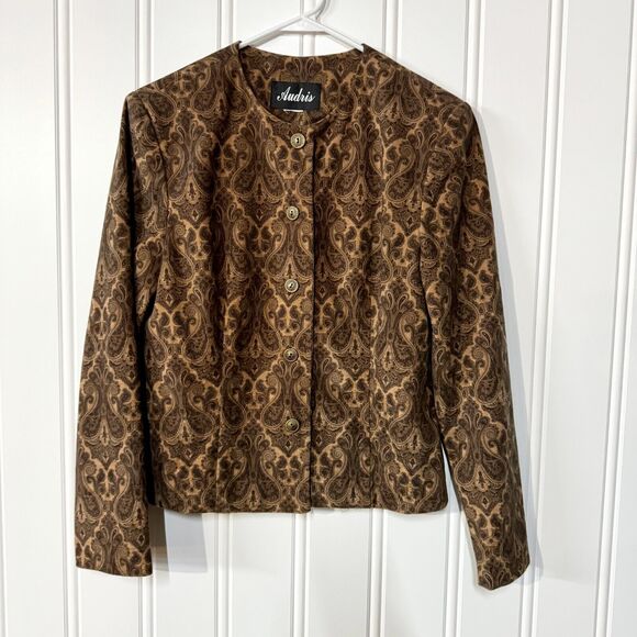 VTG AUDRIS Blazer Women Size 8 Brown 1980s Button Down Geometric Padded Shoulder