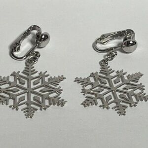VTG AVON Silver-Tone Snowflake Dangle Clip-On Earrings Winter Christmas