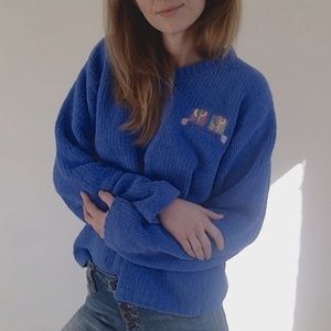 > Arizona novelty light blue soft pullover sweater; pastel cactus embroidery at the left chest; v-neck