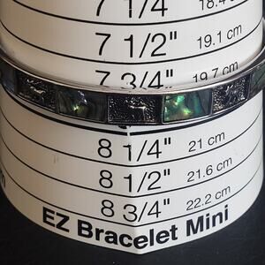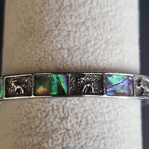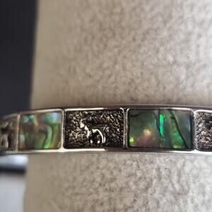 VTG Abalone Shell Inlay Bangle Bracelet Silver Tone with Ram Inserts Signed M