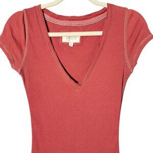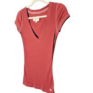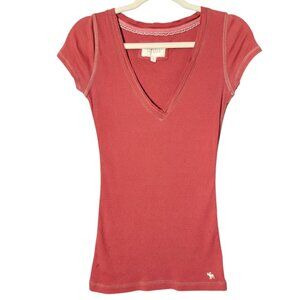 VTG Abercrombie & Fitch Womens Y2K 2000s Moose Deep V-Neck Fitted Shirt Medium