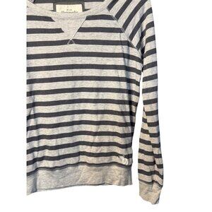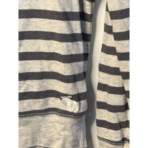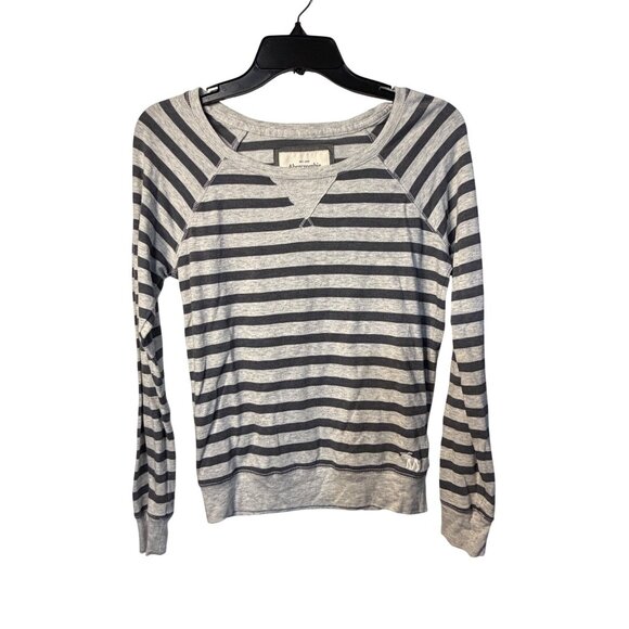 Vintage Abercrombie & Fitch women’s XS long sleeve sweatshirt in gray with striped raglan sleeves. Bella Swan Y2K style, soft and cozy, perfect for early 2000s casual fashion.