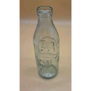Vintage 10-inch tall embossed glass bottle with the words "Absolutely Pure Milk" on the front. Italian-made, this bottle is perfect for collectors or as a decorative piece. Ideal for rustic, farmhouse, or retro-inspired decor. Clean and ready to display.