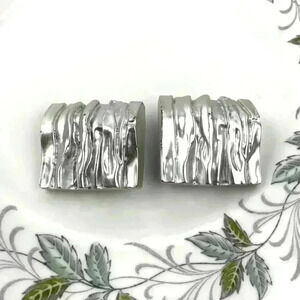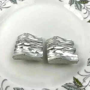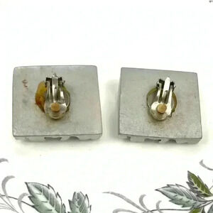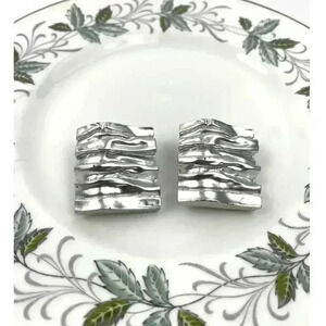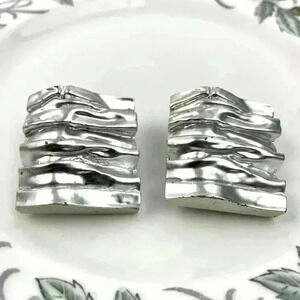 VTG Abstract 90's Silver Painted Square Ridge Clip On Earrings