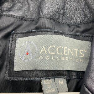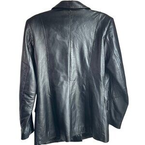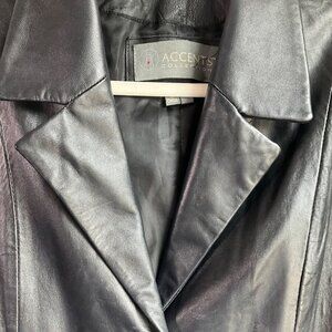 VTG Accent Women MediumBlack Leather Blazer Jacket Soft Minimalist Old Money