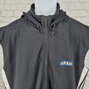VTG Adidas Black Breakaway Snap Hood Sleeveless Full Zip Track Jacket Vest 90s L