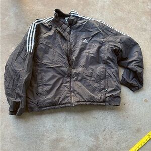 VTG Adidas Black Windbreaker with Signature Stripes size 2XL Quilted Interior