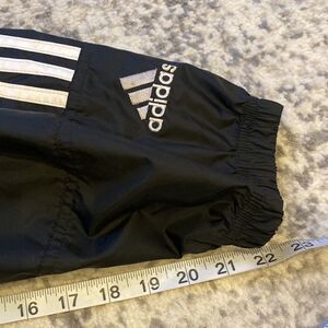 VTG Adidas Windbreaker Jacket size XL 3 stripes on sleeve big spell out on back logo on chest sleeve and back with spell out no rips or holes ! Has one tiny stain on sleeve stripe other then that in amazing condition for age rare