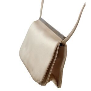 VTG Adriana V. Campanile BEIGE GOLD SATIN SILK FLAP X-BODY SHOULDER BAG CLUTCH