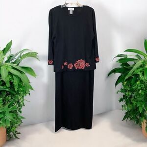 VTG Adrianna Papell 2-Piece Sweater Set Womens Sz XL Rose Embroidered Beaded